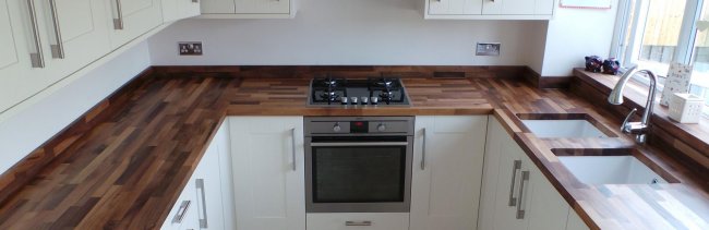Такие поверхности выполнены из экологически чистого материала и создают особую атмосферу уюта на кухне. Однако они обладают невысокой устойчивостью к ряду моющих средств, а для сохранения устойчивости к влаге дерево необходимо периодически обрабатывать специальном воском, лаком, маслом.