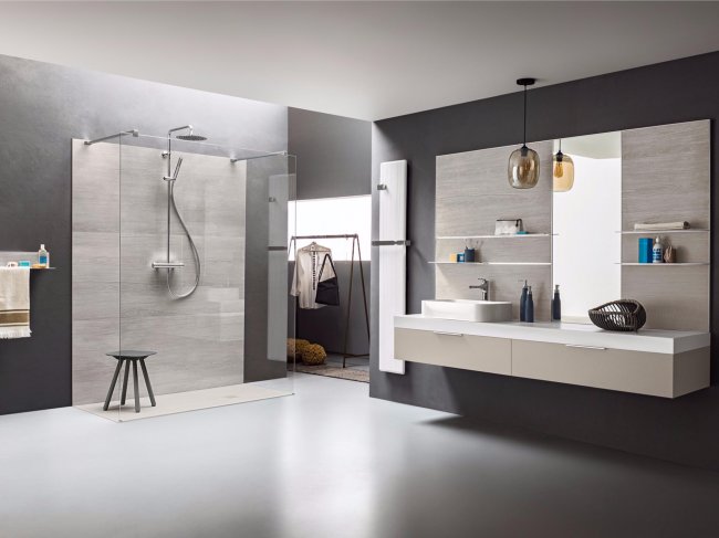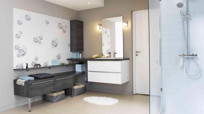 Голые стены и душ – вряд ли можно назвать такой интерьер приятным. А чтобы разместить шампунь, средства гигиены, повесить одежду, стоит оборудовать помещение полочками и вешалкой. Подбирается мебель для ванной комнаты индивидуально в интерьер конкретного помещения.