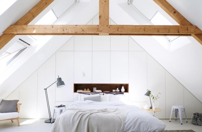 В оформлении светлой спальни часто используют белый цвет. Но при этом следует соблюдать осторожность. Неграмотное и обильное применение белого цвета может создать ощущение холодной и нежилой комнаты. Если же интерьер оформлен правильно, то такие детали привнесут в помещение атмосферу спокойствия и умиротворения.