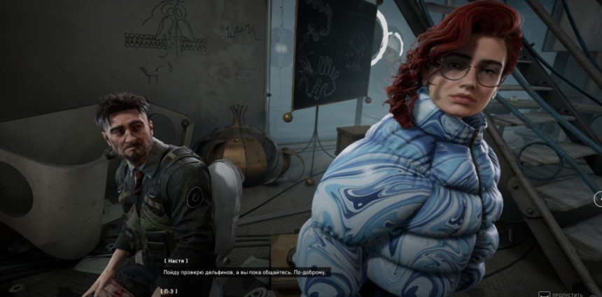 И с этой линией не всё гладко, точнее — с её подачей. Концептуально звучит неплохо: супруги-спецагенты, которым стёрли память, которых вынудили работать против своей воли, а затем стравили в смертельном поединке, пытаются заново узнать друг друга, принять былые ошибки, простить и снова полюбить. Вроде бы может получиться серьёзная и проникновенная история, и, формально, повествование идёт именно этой дорогой. Только вот в мелочах всё начинает рассыпаться: эмоциональное развитие отношений героев происходит скачками, где они то практически чужие люди, то внезапно влюблены по уши, то опять отстраняются, то снова декларируют любовь до гроба. Такие резкие переходы происходят буквально за секунды, в соседних диалогах. Очевидно, разработчики и сами ощутили некоторый диссонанс и добавили Кате реплику о том, что из-за разделения сознания её эмоциональное состояние может скакать от одной крайности к другой. Но откуда тогда подобные скачки настроения и эмоциональные перепады у майора?