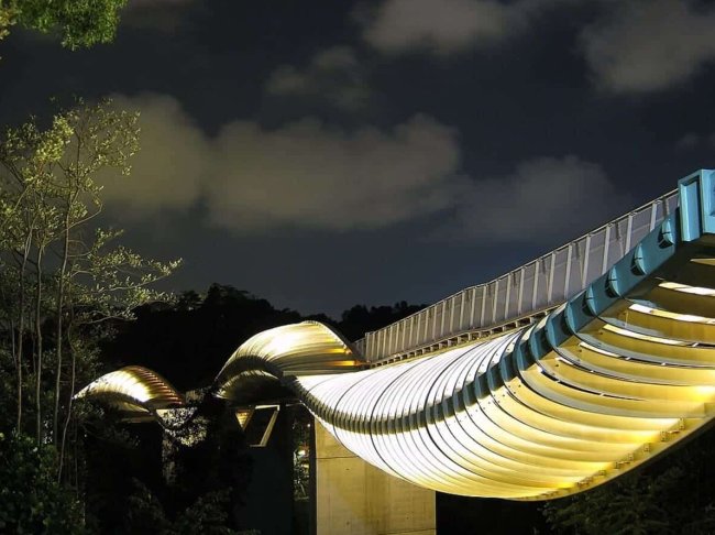 Мост «Волны Хендерсона» в Сингапуре — длиной 274 метра — один из самых математичных мостов в мире. Архитектор Джордж Лежандр спроектировал его, опираясь исключительно на трехмерные алгебраические уравнения. На высоте 36 метров над дорогой Хендерсон он соединяет парки Южного хребта Сингапура.