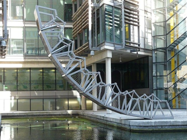 Этот крошечный мост (длина 12 метров) — настоящее инженерное чудо. В отличие от обычных разводных конструкций, Rolling Bridge складывается в аккуратный восьмиугольник. Восемь треугольных секций поднимаются и сцепляются за две–три минуты, будто оживающая стальная змея.