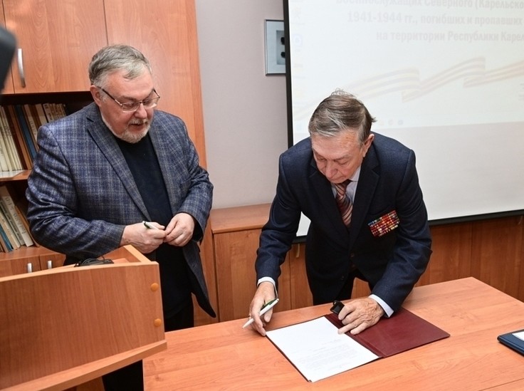 – За последние 5 лет мы подготовили и разместили на своих ресурсах базу данных партизан Карельского фронта, подпольщиков. В прошлом году появилась база данных бойцов истребительных батальонов, и в этом году, благодаря Совету ветеранов и Фонду «Народная память», мы получаем большой массив данных о бойцах, погибших на Карельском фронте, – сказал Александр Морозов.