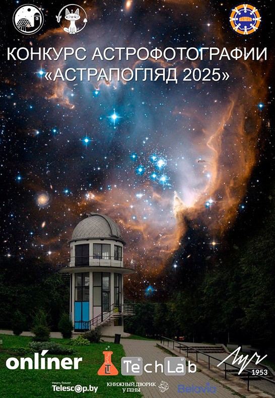 Обсерватория Минского планетария и Минский государственный дворец детей и молодежи проводят конкурс астрофотографии «АстраПогляд 2025». На конкурс можно представить астрономические фотографии не старше 2023 года, победители будут выбираться в восьми номинациях, среди которых — «Приз зрительских симпатий».