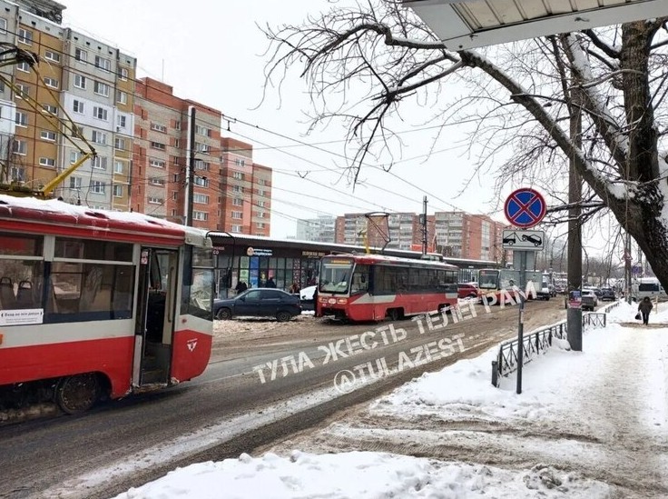 В тульском Заречье остановлено движение трамваев из-за припаркованной машины