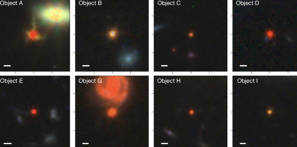 Загадочные объекты, известные как «маленькие красные точки», впервые обнаружили с помощью телескопа «Джеймс Уэбб» в конце 2022 года. Они существовали в космосе лишь короткое время, впервые появившись во Вселенной менее чем через 1 миллиард лет после Большого взрыва и почти полностью исчезнув через 2 миллиарда лет, что было трудно объяснить.