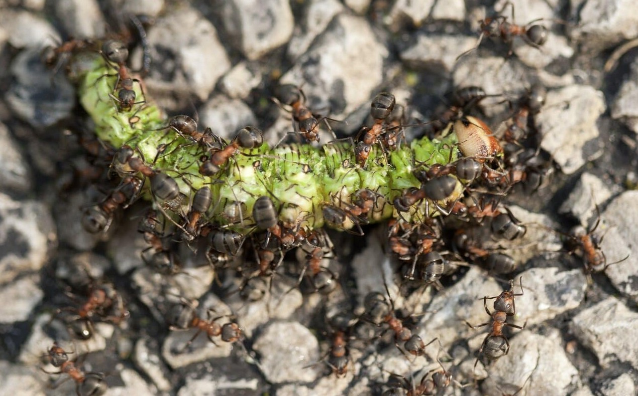 Некоторым видам бабочек, например семейству голубянок, муравьи нужны для выживания на стадии гусеницы. Муравьи относятся к гусеницам как к членам колонии, переносят их в муравейник, защищают от хищников и кормят. Взамен гусеницы выделяют для муравьев сладкие на вкус вещества.