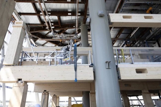 Гибридная конструкция означает, что, в отличие, например, от норвежского небоскреба Mjøstårnet, в проекте широко используются бетон и сталь, что позволяет зданию подниматься значительно выше, сохраняя при этом устойчивость. Наряду с этими материалами применяются клееные деревянные колонны и перекрестно-клееные деревянные панели, которые поставляются из Европы. В общей сложности в строительстве будет использовано около 10 000 кубических метров инженерной древесины.