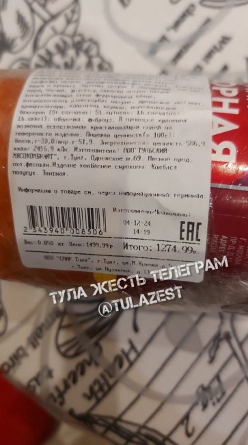 «Продают мраморную ветчину (цена 670 рублей) по цене элитной (1500 рублей) вот так они обманывают пенсионеров. Наглые, бессовестные, бесстыжие. Администрация даже не извинилась», – цитирует канал одного из покупателей.