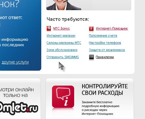 Компания МТС данную функцию разместила на главной странице своего сайта, найти ее проще простого.