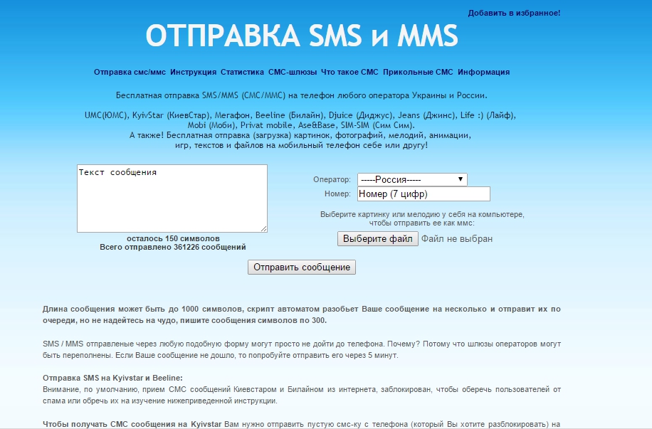 Важно! Необходимо учесть, что большинство операторов позволяют отправлять сообщения только другим абонентам представленной сети. То есть, например, отправить сообщение абоненту «МТС» с сайта «Билайн» не получится.