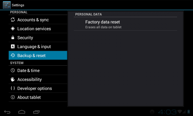 Разрешить ситуацию в случае, когда планшет включается только наполовину, можно довольно просто при помощи режима под названием Hard Reset. Особенно хорошо данная функция реализована на устройствах китайского происхождения. Для использования этого способа, независимо от производителя, необходимо выполнить следующие действия в строгом порядке: