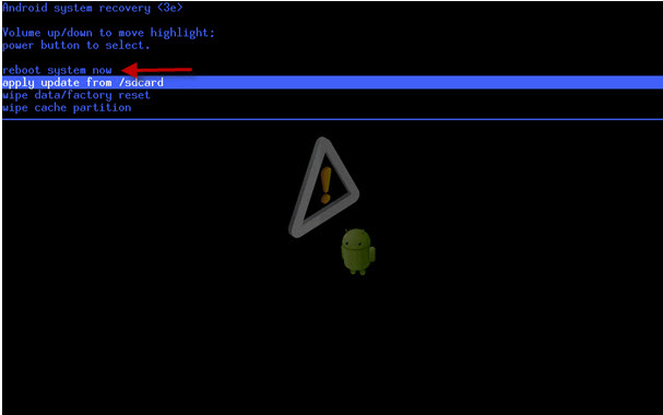 - клавишами регулировки громкости следует выбрать пункт под названием reboot system now.