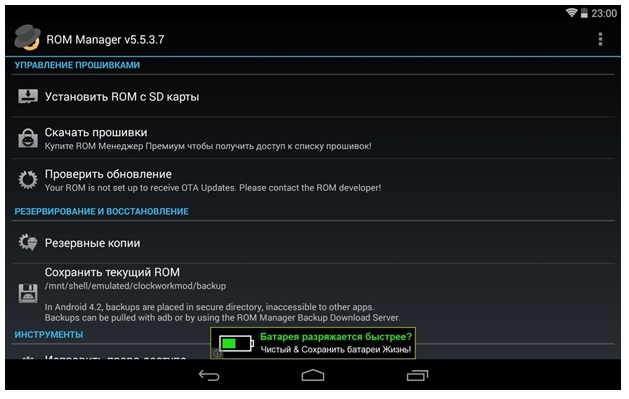 Важно! Премиум версия программы «Rom Manager» позволяет устанавливать апдейты непосредственно прямо из приложения. Если у вас бесплатная версия программы, то поиски прошивки будут самостоятельными.