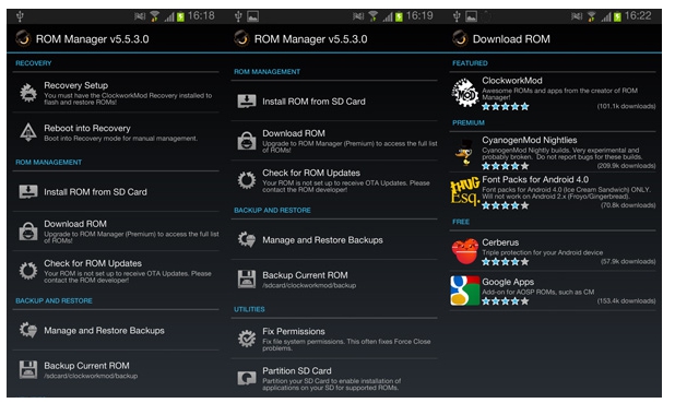 - затем скачиваем приложение «Rom Manager» и устанавливаем его;