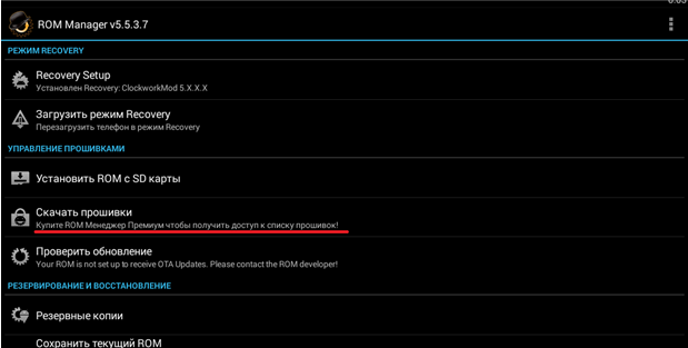 - находим приложения, которые позволяют прошить Андроид. Рекомендуется использовать приложения Rom Updater или Rom Manager;