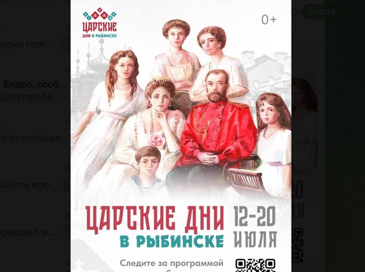 «Царские Дни» пройдут в Рыбинске. В комплекс мероприятий входят выставки, концерты, игровые и танцевальные программы для молодежи, ярмарка ремесел и сувениров, показ тематических фильмов из фондов кинофестиваля «Свет миру». В храмах города пройдут богослужения и крестные ходы.